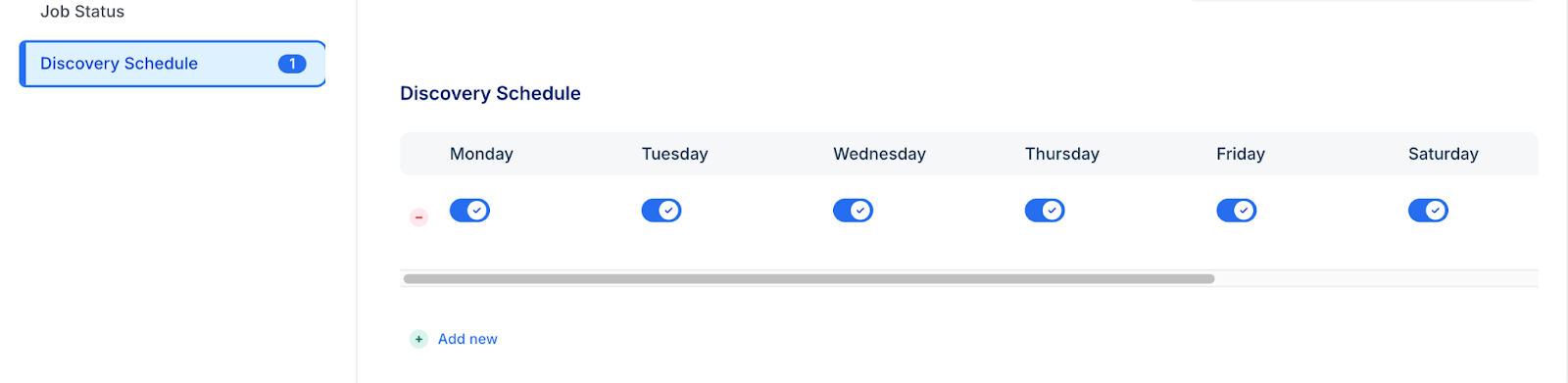 In the Discovery Schedule section, click Add new to set a recurring interval.