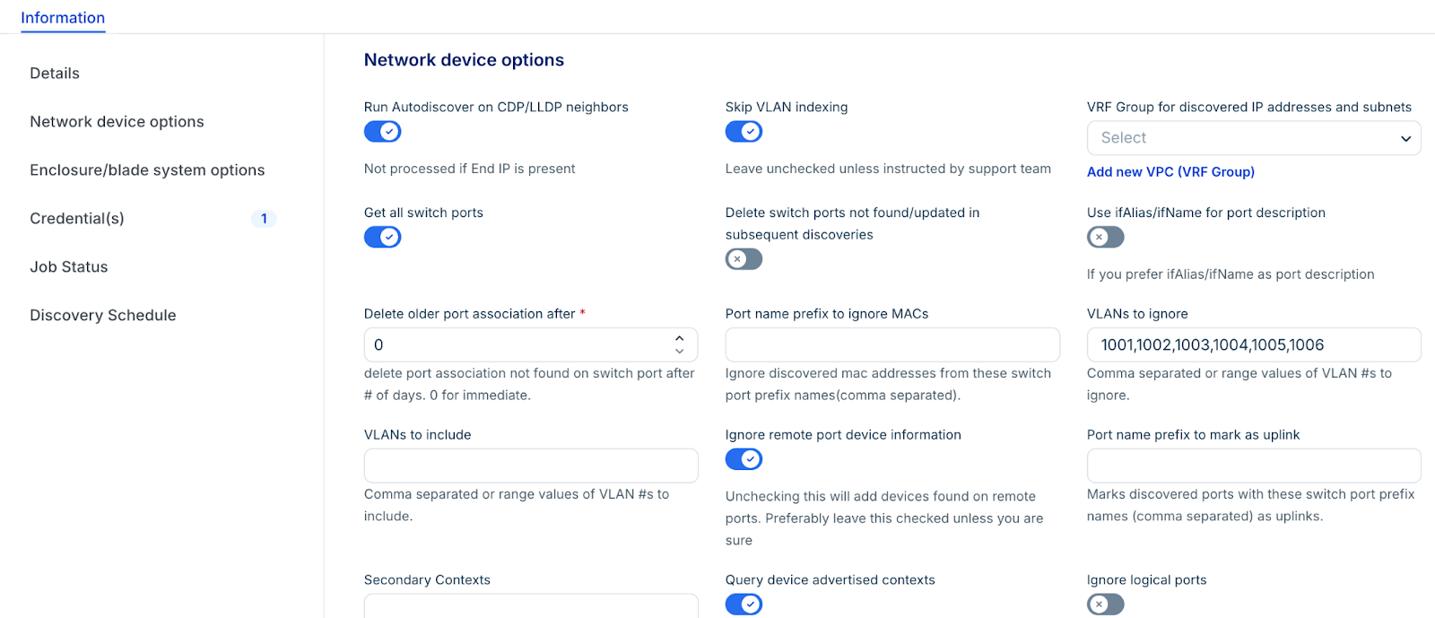 Run Autodiscovery on CDP/LLDP Neighbors: Enable this to find all reachable neighbors with shared credentials.