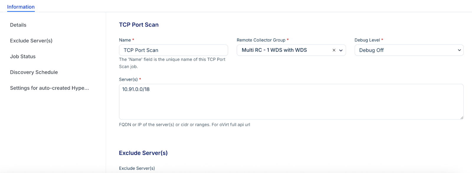 Optionally, list any servers in the Exclude field that should be skipped.