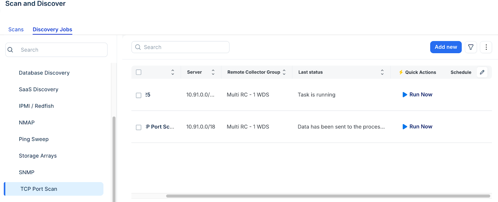 Note: Scheduling a TCP port scan job only schedules the scan itself. The discovery jobs created as a result of the scan must be managed or scheduled separately.