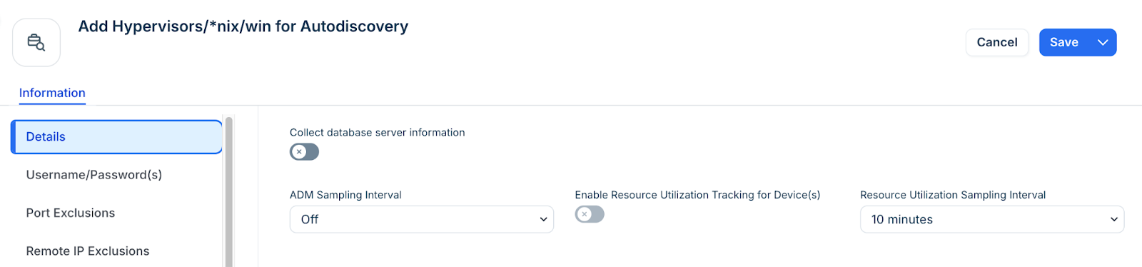 You can change the ADM Sampling Interval to be used with your *nix autodiscovery job. By default the sampling interval is off.