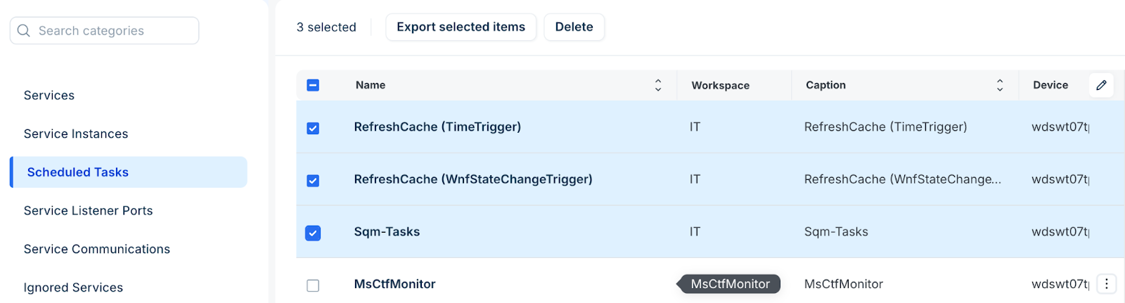 Scheduled tasks represent automated processes configured to run at specific intervals or triggers on your discovered devices. By identifying these tasks, you gain visibility into background operations, maintenance scripts, and automated workflows that exist within your infrastructure.