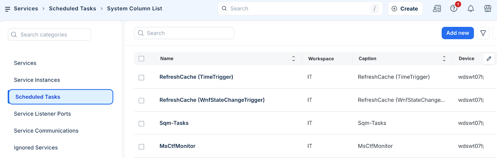 Go to Applications > Services > Scheduled Tasks to open the list page.