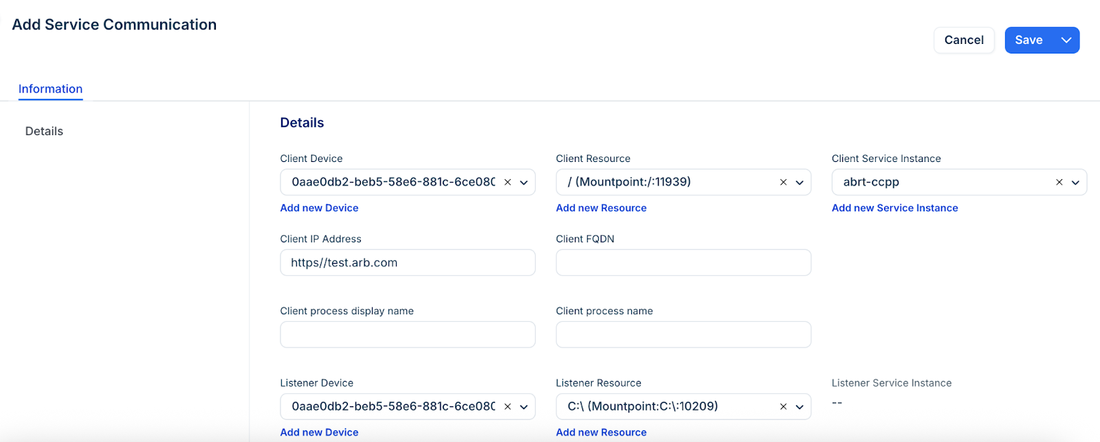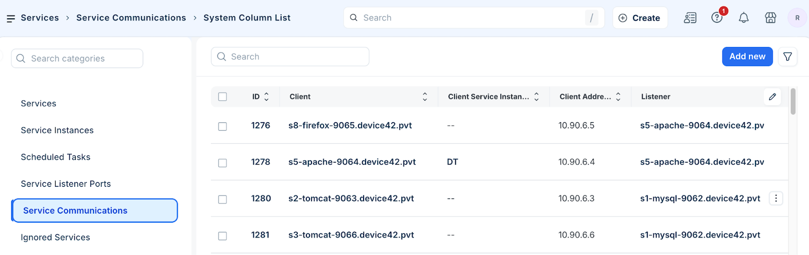 Click Add new to create a service communication.