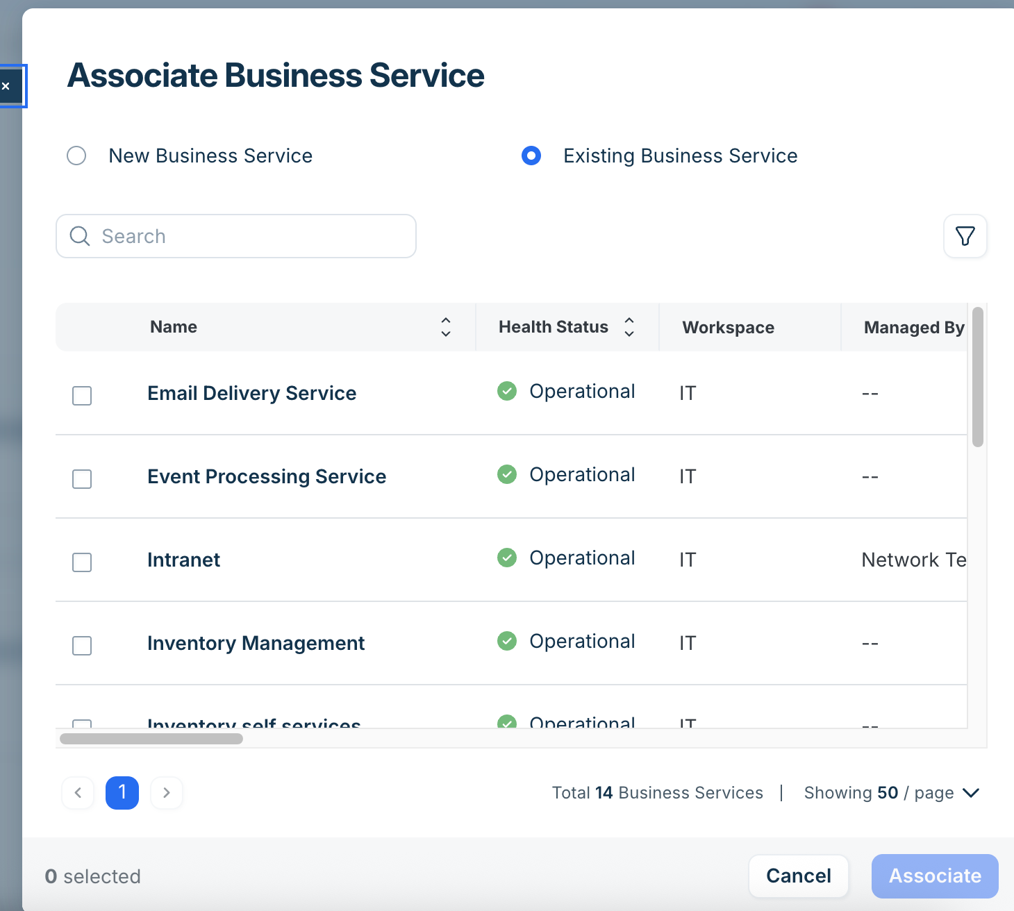 Add existing Business Services to model service-to-service relationships on the canvas. See Business Service Relationships for more on this feature.