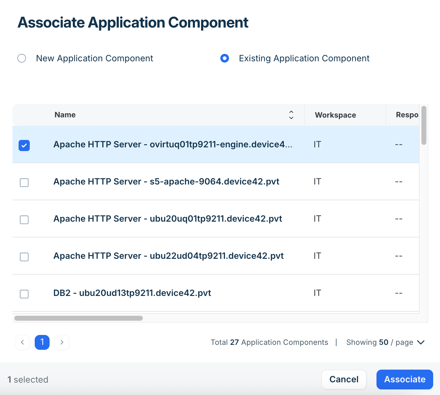 Application Components represent the logical layers of your application, such as web servers, databases, application servers, and load balancers. Adding them to a Business Service maps out the software architecture behind the service, giving you visibility into which application layers support each business function.