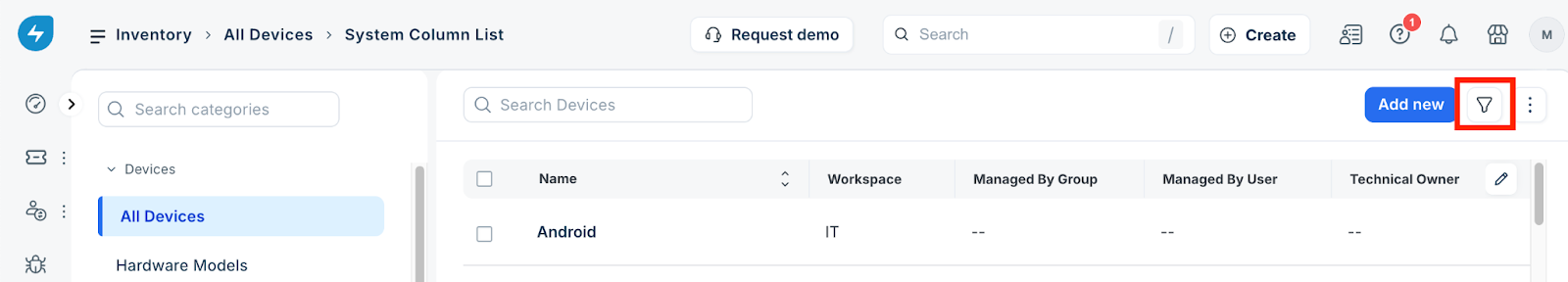 To access the list view, go to IT Asset Management > Inventory. From this device list page, you can: