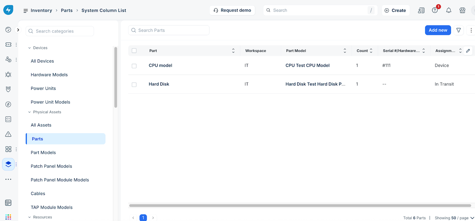 Note: Available only for new signups after the 31 March, 2026 release. If you signed up earlier, refer to the existing ITAM documentation.Parts management offers granular control over individual components within your hardware. Parts can be inserted into dedicated part slots on a parent device, allowing for precise tracking of hardware upgrades and movements.