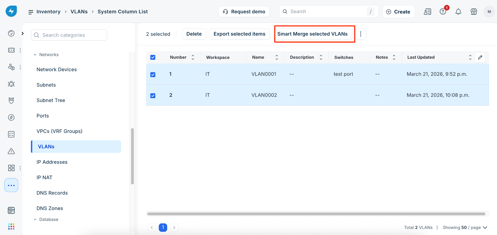 Follow these steps to match and merge identical VLAN numbers across your entire inventory.