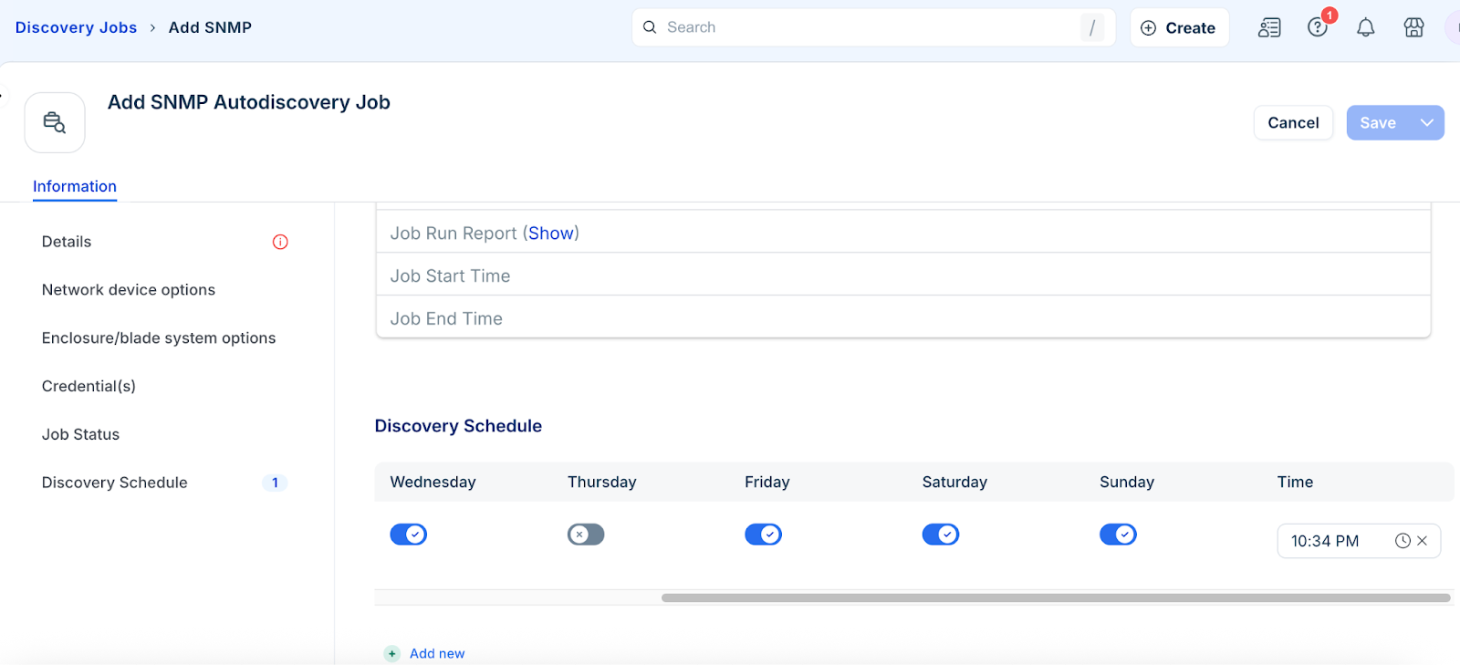 In the Discovery Schedule section, click Add new.