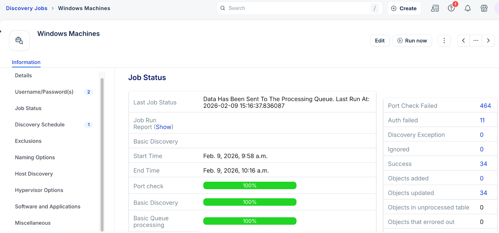 Discovery Job Results – Review overall job status.