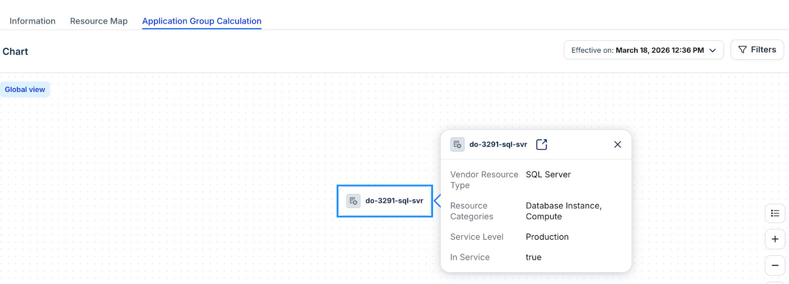 Application Group Calculation: Click the Application Group Calculation tab to view a visualization of how the system calculates the group logic for that specific cloud database.