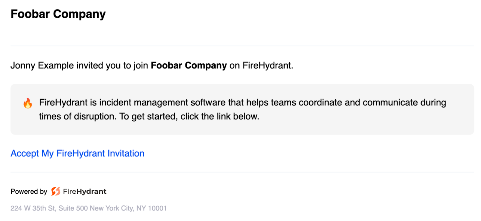 Note: Ensure your team members accept your email invitation instead of signing up separately on the FireHydrant portal. Signing up on the website creates a new organization and account. FireHydrant enforces unique email addresses system-wide, so if someone accidentally registers on their own, they have to reach out to Support to disable the duplicate account or email before they can accept your invitation.