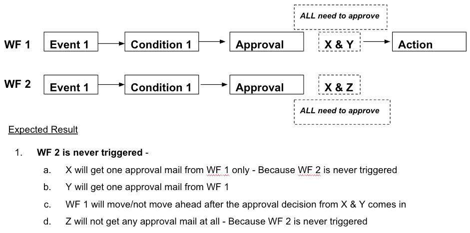 Even if approvers who get mails from WF #1 and 2 approve - those workflows will not move ahead.